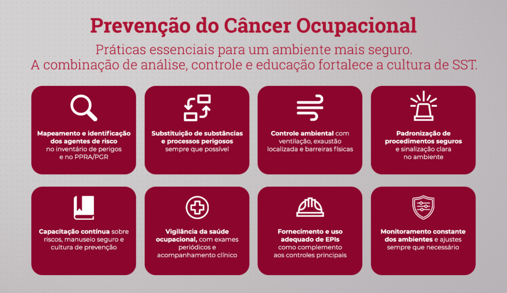 A prevenção do câncer ocupacional exige uma abordagem contínua e estruturada, que começa pela identificação correta dos riscos e segue com ações de controle, monitoramento e educação.